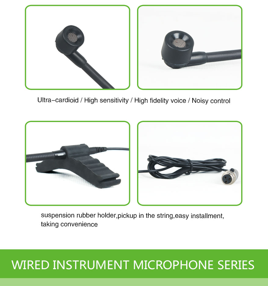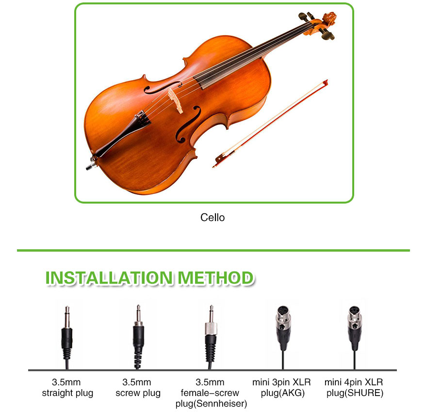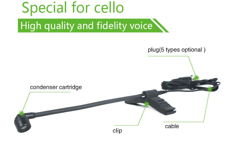 The wired cello microphone includes a durable, lightweight clip-on mount that attaches securely to the body of the cello without damaging the finish or affecting playability. Its ergonomic design ensures minimal interference with performance posture, making it an ideal solution for extended rehearsals, performances, or sessions.