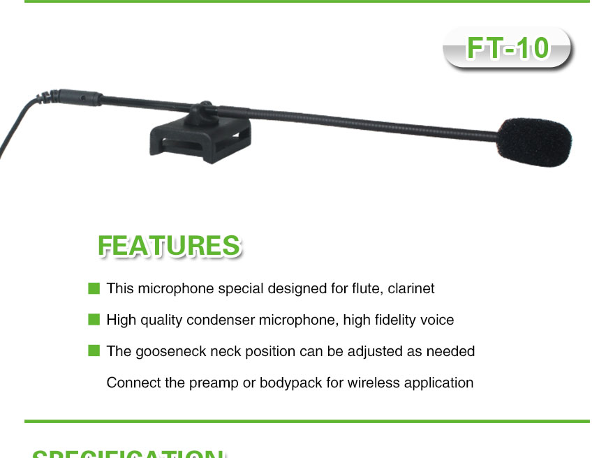 Whether you're a soloist, ensemble player, or recording artist, the FT-10 wired flute microphone delivers professional sound capture for any musical setting.