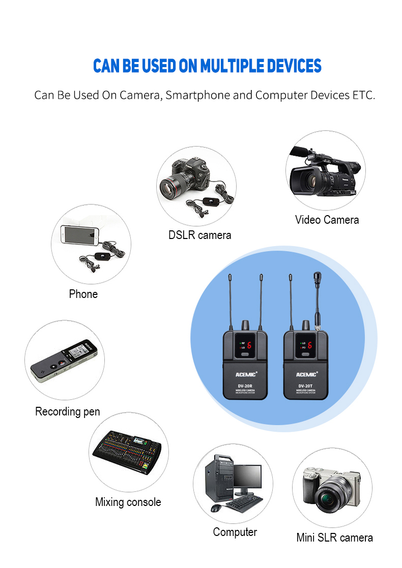• Versatile Application: This wireless camera microphone is a perfect fit for computer/smart phone recording, DSLR videography, field recording and interviews, broadcast TV, Electronic News Gathering, providing dependable audio broadcasting and recording.