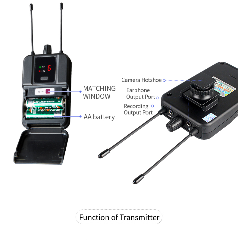 • Easy to Use: Transmitter with LCD display to show battery status, channels, etc. Come with a camera shoe mount, The wireless camera microphone can be directly fixed to your DSLR camera and other shooting equipment.