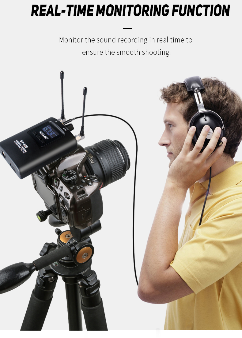 About this item:【Superior Sound Quality】The wireless camera microphone receives crystal clear sound and then transmits it to your DSLR camera through UHF digital wireless technology. The recorded sound is processed by noise cancelling to restore high fidelity, and the 0s delay transmission range is 164 feet (50m). UHF digital can provide a stronger signal which reducing the interference of Bluetooth or WiFi.【Good quality omnidirectional lavalier】Get crystal clear sound with this wireless camera microphone, perfect for interviewing or recording videos - and do it from any device! The DSLR microphone can work with any Android or iPhone mobile, iPad, desktop, DSLR camera, and laptop.You can use this lapel mic on an interview subject or for YouTube, networking, and audio videos.【Plug-and-play mic】Unlike other microphones, this wireless camera microphone uses omnidirectional sound pickup technology and high-specification metal material. It comes with 100 channels and delivers different frequencies. And choosing a frequency is easy; just press the button on the transmitter. This lapel microphone is fairly well put together with a reinforced premium metal clip that helps keep it firmly connected.It is a simple plug and play option for the majority of mobiles, tablets, and cameras, making it one of the best wireless camera microphone.【Well-made Quality transmission】This is one of the best wireless camera microphone. So whether you have an interview to conduct or a podcast to record, you can trust the reliability of this microphone. The microphone is a beautifully-built sensitive condenser capsule with a full-range response. In addition, it comes with a foam pop shield to reduce wind noise and plosive vocalizations.【100 channel choices】With a UHF frequency range of 600MHz-937MHz and two groups of 100 selectable channels, the wireless camera microphone allows you to capture the best audio wherever you are. This is an ideal solution for those recording video and sound outdoors. With the real-time monitoring function, you can test whether it is working properly during the recording process to ensure smooth recording. One-click mute ensures the microphone works efficiently and stably.【Range of applications】This well-manufactured wireless camera microphone has a wide range of use options, providing a reliably stable transmission via a range of UHF frequencies. It is an omnidirectional wireless camera microphone featuring a radio transmitter that you can easily clip on. It is excellent for on-the-go recording. Ideal for field recording and reporting. Complete wireless camera mic system with everything you need: mic, bodypack transmitter, and camera-mountable receiver. You don't need additional components.【Noise Reduction】 For this wireless camera microphone, the range is surprisingly good. While it does pick up background noise, the intended recording can be heard clearly and at a high quality. It features a perfectly adequate omnidirectional microphone with a great tuned response, providing a detailed electrical signal to produce clear, naturally balanced authentic vocal audio.【Function】The wireless camera microphone is clip-on microphone that is usually small in size and are often used for filmmaking and broadcasting, Because of their unobtrusive nature, they can be placed close to the mouth while being discreet. Lavalier microphones clip onto the clothing of an individual and are connected to a wearable transmitter pack. The transmitter sends a signal to the receiver to reproduce audio wherever you are.
