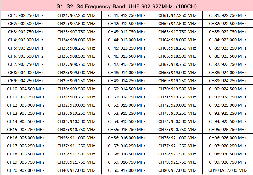 (606-630 MHz Optional), (USA: 902-928, UK: 863-865, ROK: 925-937 MHz)