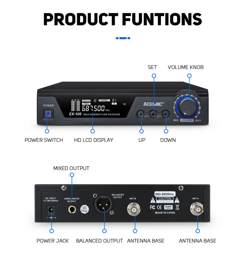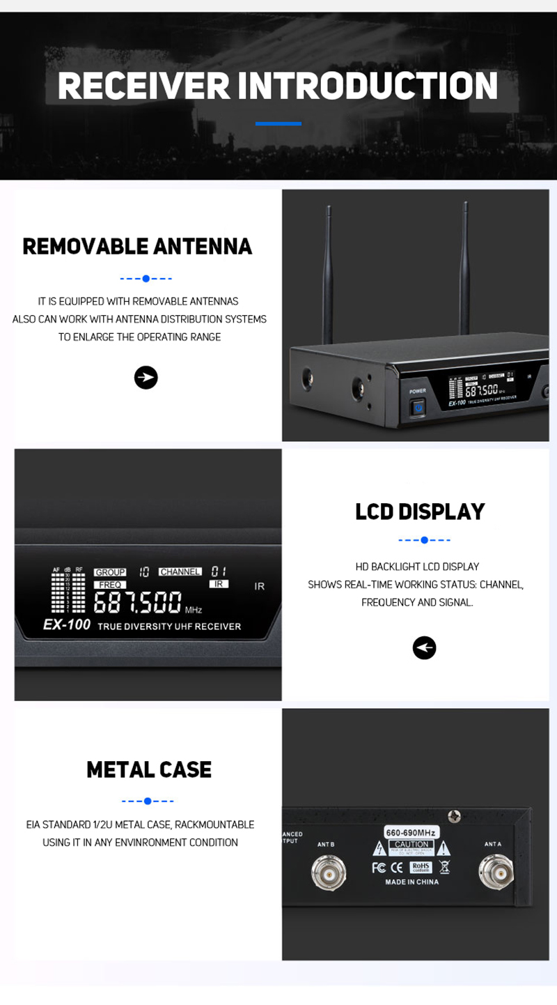 • UHF Frequency Range (600–937 MHz): Delivers stable, interference-free transmission across a wide frequency spectrum.