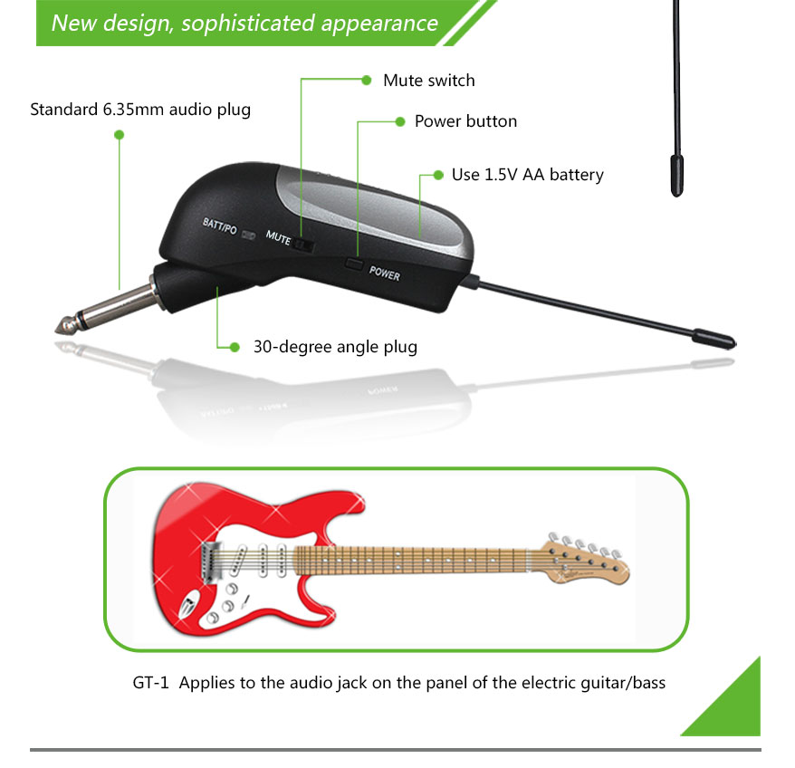 Step on stage without limits with the wireless guitar system, designed for guitarists and bassists who demand crystal-clear tone and total freedom of movement. Whether you're performing live, rehearsing, or recording, this compact and easy-to-use system ensures your sound stays pure and powerful—without the hassle of cables.