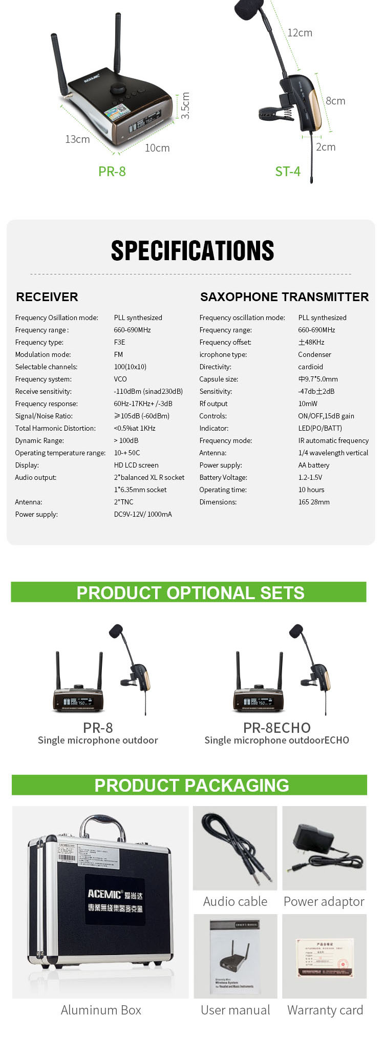 PR-8ECHO/ST-4 Wireless Saxophone Microphone for Stage 3 Echo