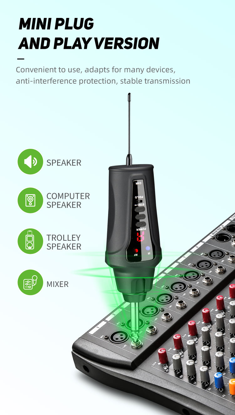 Portable plug-on receiver, plug in the mixer or active speaker directly