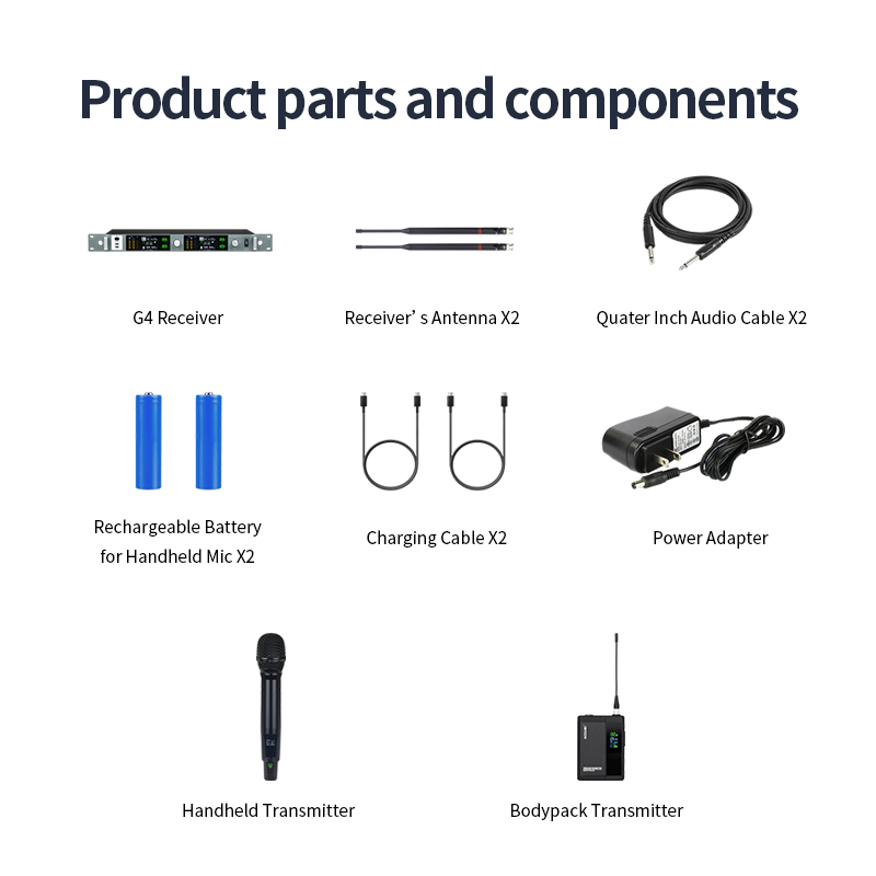 G4 is a high-end wireless microphone system for stage performance, events, singer singing, tour, studio etc.