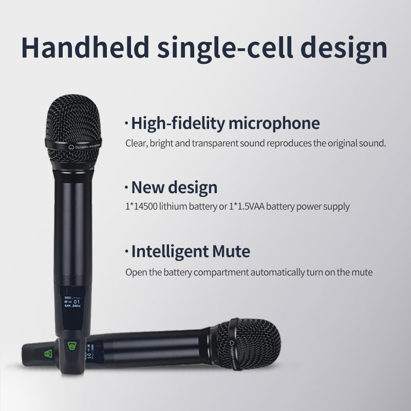 Handheld mic comes with one piece of rechargeable 1000mAh battery, battery life up to 10 hours.