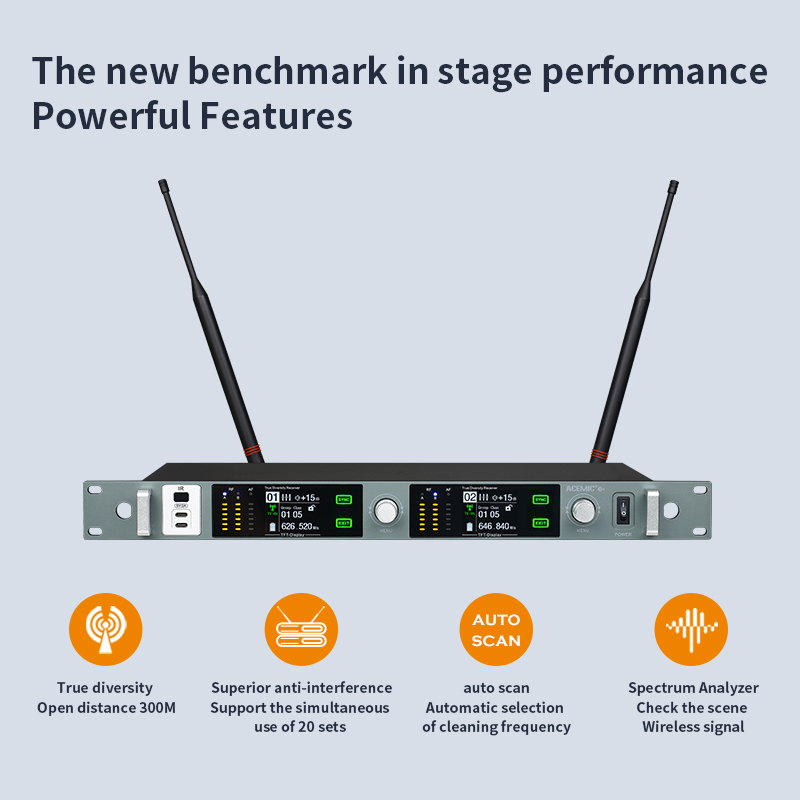 Acemic G4/MicA Wireless Microphone System – Dual Channel UHF True Diversity System for Stage PerformanceDesigned for demanding live environments, the G4/MICA wireless microphone system delivers uncompromising performance, exceptional clarity, and maximum reliability for professional stage performances. Whether you’re in a concert hall, church, auditorium, or live production environment, this dual channel UHF wireless microphone system ensures your audio is heard clearly and without interruption — even in the most RF-congested venues.
