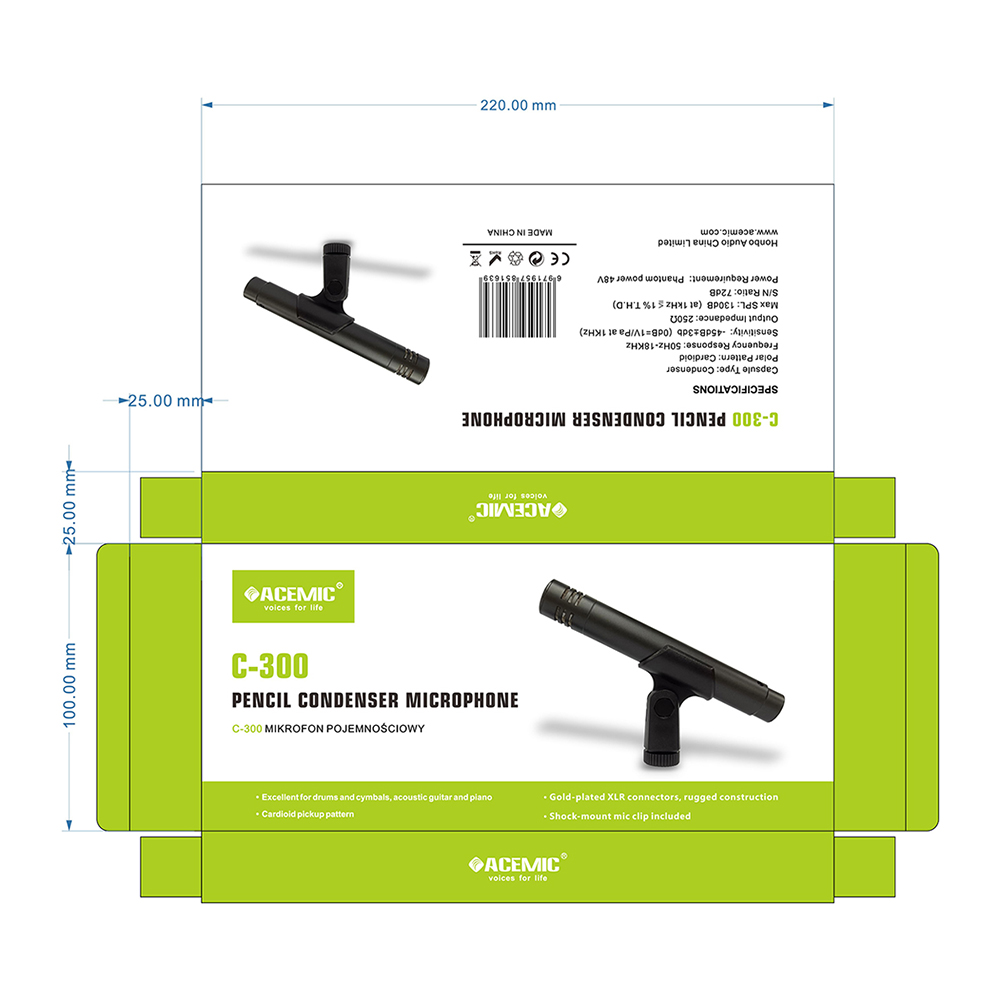 Power Requirement:Phantom power 48VPrecision and Clarity – C-300 Pencil Condenser Microphone for Instrument Recording
