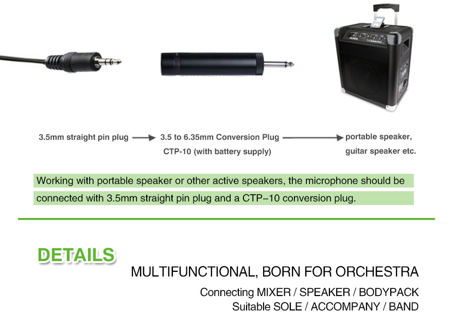 Designed for orchestral instruments like saxophone, trumpet etc. applications